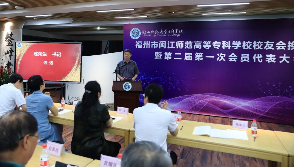 岁月不居,时节如流,闽师情怀,一脉相承。为进一步凝聚校友力量,汇集校友资源,促进校友与学校共同发展。6月10日上午,福州市闽江师范高等专科学校校友会换届大会暨第二届第一次会员代表大会在闽江师专附属实验小学三层鳌峰书院隆重举行。福州市民政局社会组织管理和行政审批处处长邹坚民、福州市教育局高等教育与对外合作处处长陈硕、闽江师专党委书记陈荣生、校长杨建义、原校长林贤、党委副书记林旻、副校长谢敏峰、纪委书记陈群、副校长陈强、副校长刘翔炜、原副校长张昌勋、原副校长黄耀荣、原福州工业学校校长高汝霖;第一届校友会会长俞黄榕、黄玲等理事会成员,校友会代表以及闽江师专师生代表等应邀出席活动。