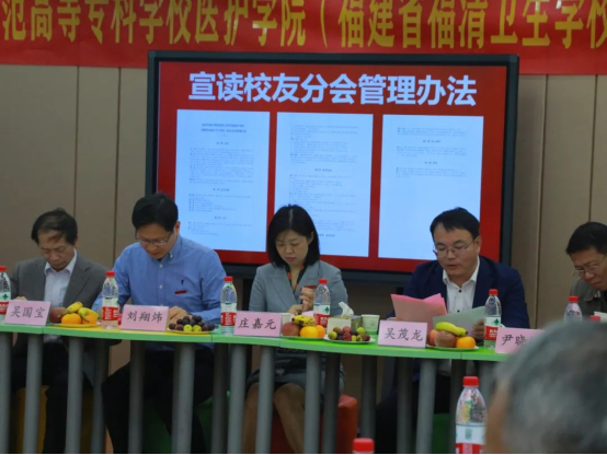 吴茂龙副院长宣读了《福州市闽江师范高等专科学校医护学院(福建省福清卫生学校)校友分会管理办法》(草案),全体与会校友进行了现场表决,并一致通过。