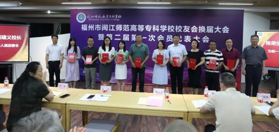 岁月不居,时节如流,闽师情怀,一脉相承。为进一步凝聚校友力量,汇集校友资源,促进校友与学校共同发展。6月10日上午,福州市闽江师范高等专科学校校友会换届大会暨第二届第一次会员代表大会在闽江师专附属实验小学三层鳌峰书院隆重举行。福州市民政局社会组织管理和行政审批处处长邹坚民、福州市教育局高等教育与对外合作处处长陈硕、闽江师专党委书记陈荣生、校长杨建义、原校长林贤、党委副书记林旻、副校长谢敏峰、纪委书记陈群、副校长陈强、副校长刘翔炜、原副校长张昌勋、原副校长黄耀荣、原福州工业学校校长高汝霖;第一届校友会会长俞黄榕、黄玲等理事会成员,校友会代表以及闽江师专师生代表等应邀出席活动。