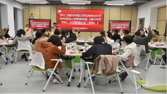 会议接着审议通过了《福州市闽江师范高等专科学校小学教育学院(福州师范学校)校友分会管理办法(草案)》,选举产生了会长、常务副会长、副会长、秘书长、副秘书长等理事会成员。