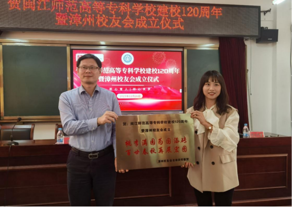 会议期间,校友代表给母校赠送了120周年校庆牌匾,全体与会人员进行合影留念。