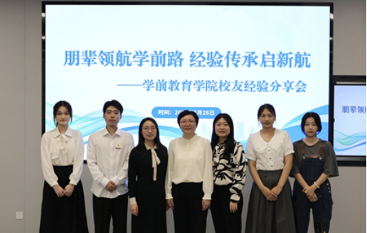 5月28日,我校学前教育学院优秀校友代表刘乘宇、付莹馨、施幼娜及黄凯芯四位同学返校开展经验交流。交流会上,四位校友结合自身成长路径展开多维度分享。