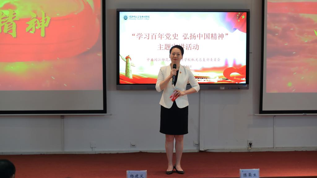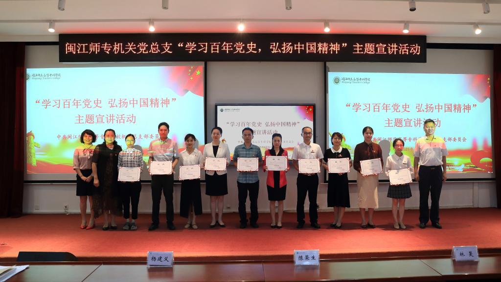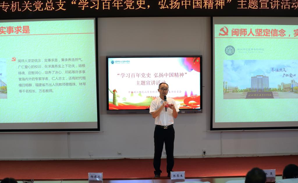 “秀水泱泱,红船依旧;时代变迁,精神永恒。让红船精神代代相传!……”6月16日下午,在闽江师范高等专科学校机关党总支“学习百年党史,弘扬中国精神 ”主题宣讲活动现场,选手们一句句激情澎湃、充满力量的话语使现场聆听的每一名人员都精神振奋、热血沸腾。