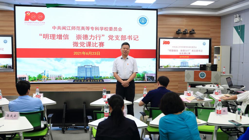 经过对各支部书记微党课课件和讲稿的评审,6月23日上午,我校“明理增信崇德力行”微党课大赛决赛在旗山校区教学楼智慧教室举行,10个微党课优秀作品的选手参加决赛。校党委书记陈荣生、校长杨建义,各党总支书记、支部书记参加了本次活动。