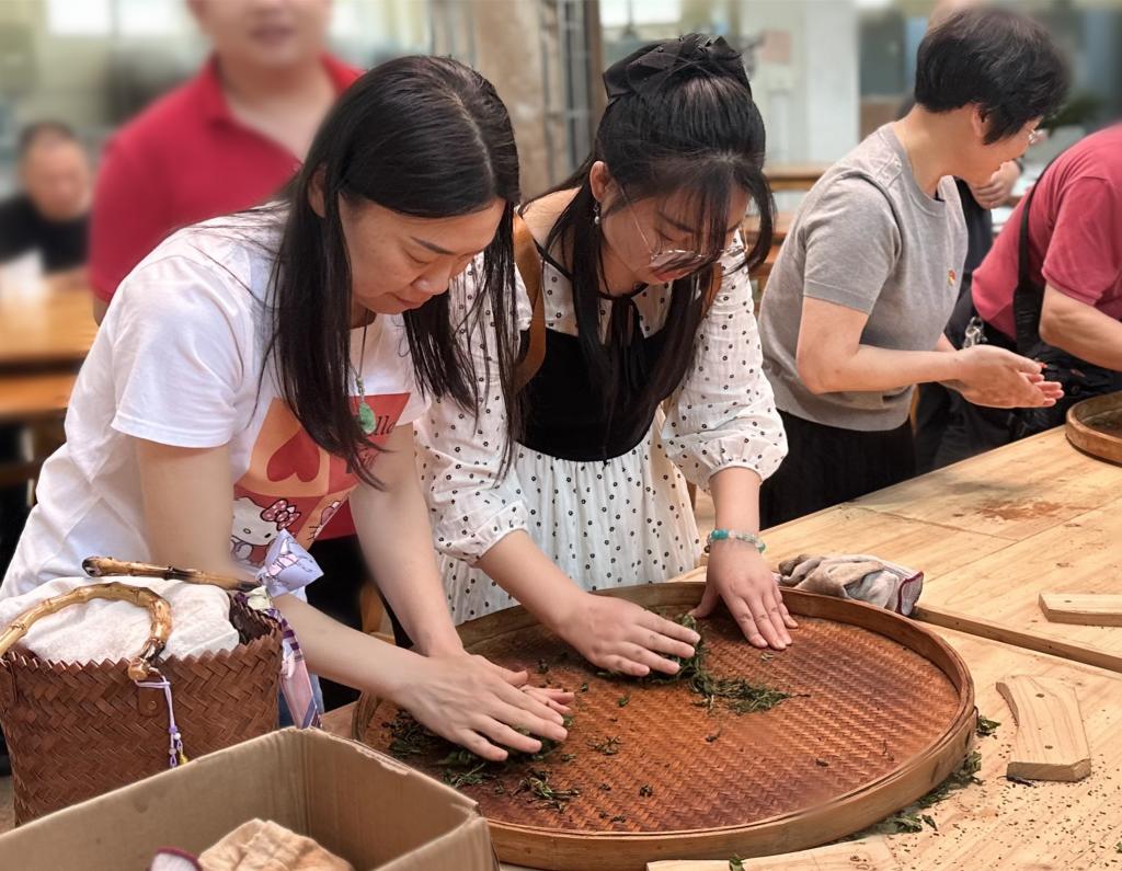 在长龙第一茶厂,厂长陈峰详细介绍了茶叶的种植、采摘、制作等工艺流程,以及茶厂对传统文化的传承。在制茶师傅仔细、耐心指导下,党员们亲身体验了整个制茶过程,了解茶厂继承传统、探索新路、积极融入新发展格局的历史,体会制茶人身上的工匠精神。