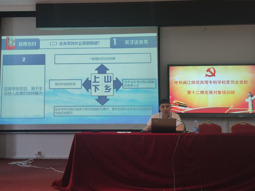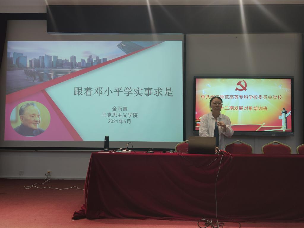 2021年5月22日至24日,中共闽江师范高等专科学校委员会党校在旗山校区2018教室开展了第十二期发展对象培训班。此次培训班邀请党委工作部、马克思主义学院教师作专题讲座。