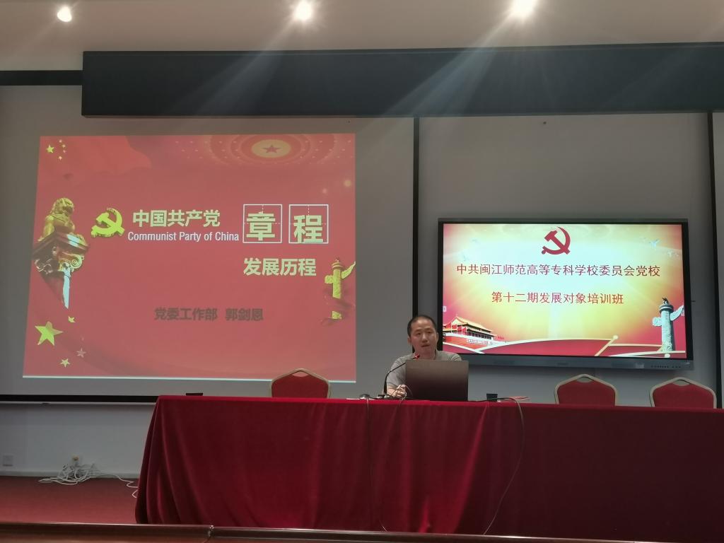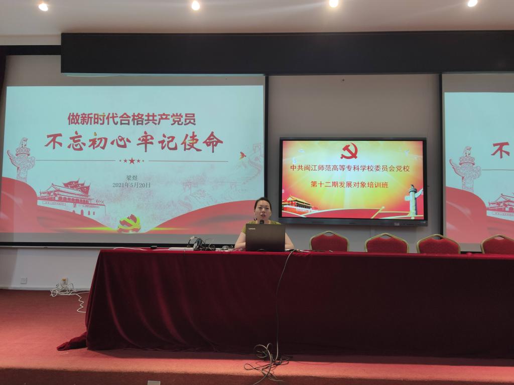 2021年5月22日至24日,中共闽江师范高等专科学校委员会党校在旗山校区2018教室开展了第十二期发展对象培训班。此次培训班邀请党委工作部、马克思主义学院教师作专题讲座。