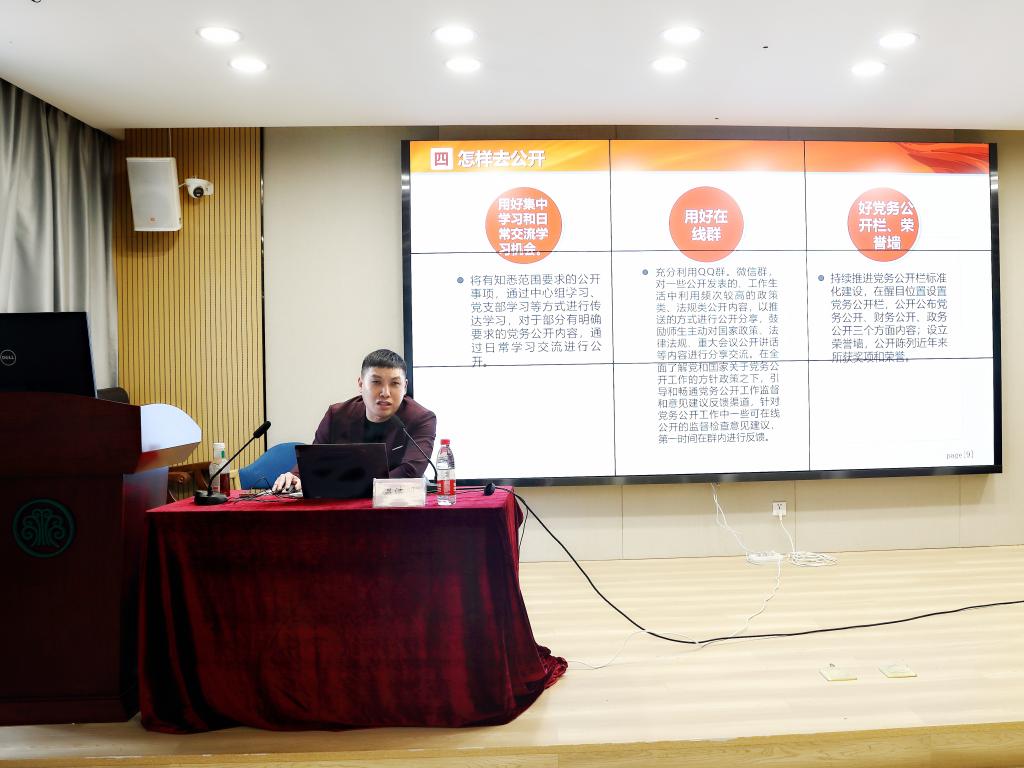 当天下午的培训分别邀请了学校党委组织部副部长温洁明同志作《基础党务工作操作实务》专题讲座和学前教育学院(福州幼教集团)综合科科长郭剑恩同志作《发展党员工作实务》专题讲座。温洁明同志介绍了在基础党务工作开展过程中“党务公开”“会议记录和会议纪要”“谈心谈话”和“政治把关”等四个方面容易出现的问题及解决对策。郭剑恩同志介绍了发展党员工作中档案审查存在的问题和对策。两场专题讲座中案例翔实贴切,讲解深入浅出,现场互动活跃,答疑认真细致,对全体参会人员有很大启发。