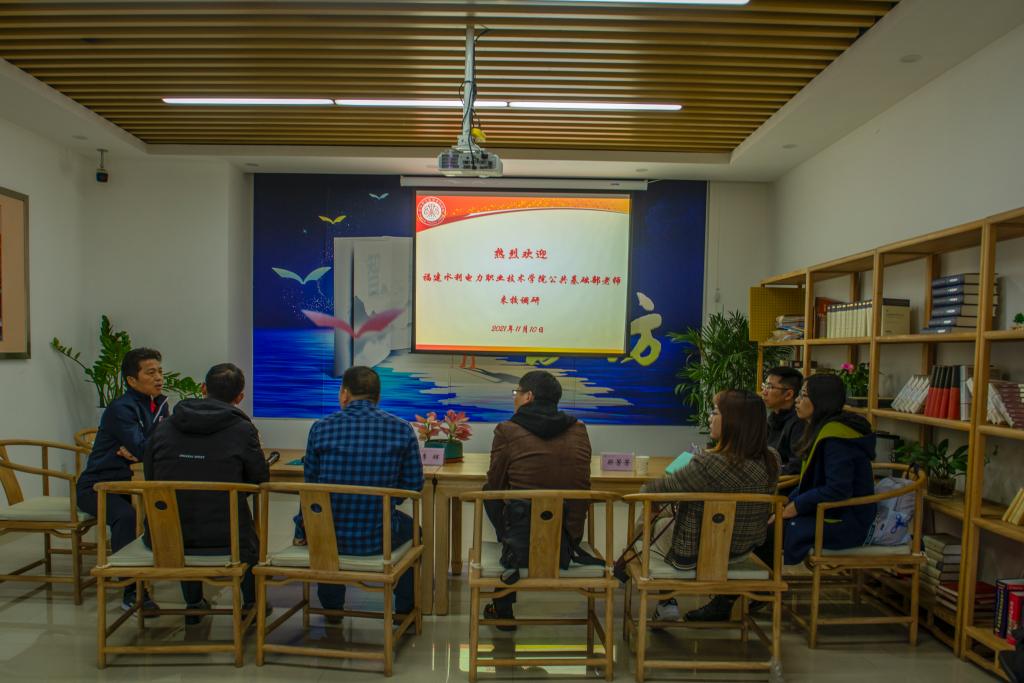 11月10日,福建水利电力职业技术学院公共基础部主任王宝艳,教育质量保障中心综合科科长殷文明等一行7人来我校交流。我校公共基础部主任薛庆云热情接待了来访教师团队。