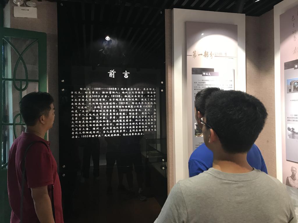党员同志们参观了“郁达夫史迹展”,看郁达夫肖像,游览了爱国主义教育基地——郁达夫史迹展。郁达夫在文学创作的同时,积极参加各种反帝抗日组织,先后在上海、武汉、福州等地从事抗日救国宣传活动。随后继续参观了戚继光生平展厅,厅正中陈列着戚继光晚年披甲戴盔的戎装胸像。两边的展壁以多组画面展现戚继光身经百战、扫平倭寇、镇服胡虏的奇功伟绩。正中还有戚继光发明的“鸳鸯阵”等阵法模盘,重现戚继光军旅生涯的光辉形象。党员同志们还认真聆听了薛庆云书记的精彩解说。