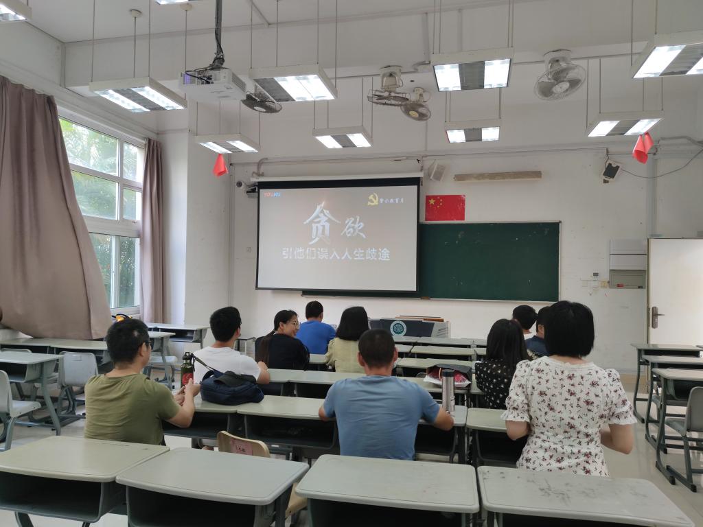 2021年6月9日下午两点半,公共基础部党支部于旗山校区第四会议室召开党史学习专题教育与反腐倡廉专题教育会议。会议由薛庆云书记主持,全体党员参加了本次会议。在党史学习专题教育会上,薛书记组织全体党员学习了如下文件:习近平总书记向世界马克思主义政党理论研讨会致贺信精神、习近平《用好红色资源,传承好红色基因 把红色江山世世代代传下去》(《求是》2021年第10期)、《论中国共产党历史》、《毛泽东、邓小平、江泽民、胡锦涛关于中国共产党历史论述摘编》《中国共产党简史》《习近平新时代中国特色社会主义思想学习问答》等指定学习书目,随后薛书记组织大家进行了党史知识竞赛反腐倡廉专题教育会上全体党员学习福建省纪委监委通报4起群众身边腐败和不正之风问题典型案例。会后全体党员观看了党史记录片《丰碑》与警示教育片《贪欲他们误入人生歧途