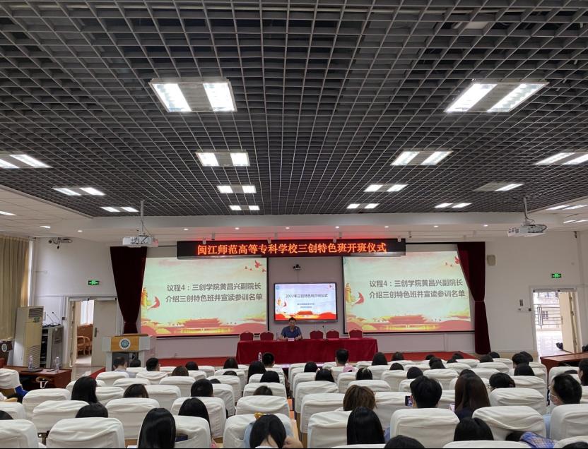 为深入推进大众创业万众创新,推动高等职业三创教育高质量发展,进一步激发师生创新创业竞赛参赛热情,2022年6月8日下午,三创特色班开班动员大会及暨三创特色班专题培训于旗山校区2018会议室召开。谢敏锋副校长、福建省汇众创新创业研究院张建青副院长、学生处郭静静处长、公共基础部黄昌兴副主任、各院系学生工作负责人出席了本次活动,入选三创特色班的项目团队成员及指导教师共计100多人参加此次活动。