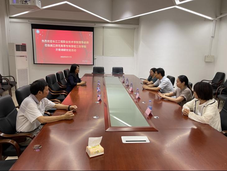 长江工程职业技术学院与我校均为中小企业创业与经营专业国家级教学资源库的参建单位,双方相关教师此前已就资源库建设方面有了比较深入的交流,本次调研侧重了解我校作为福建省三创教育示范院校,在开展三创工作方面的主要做法和经验。
