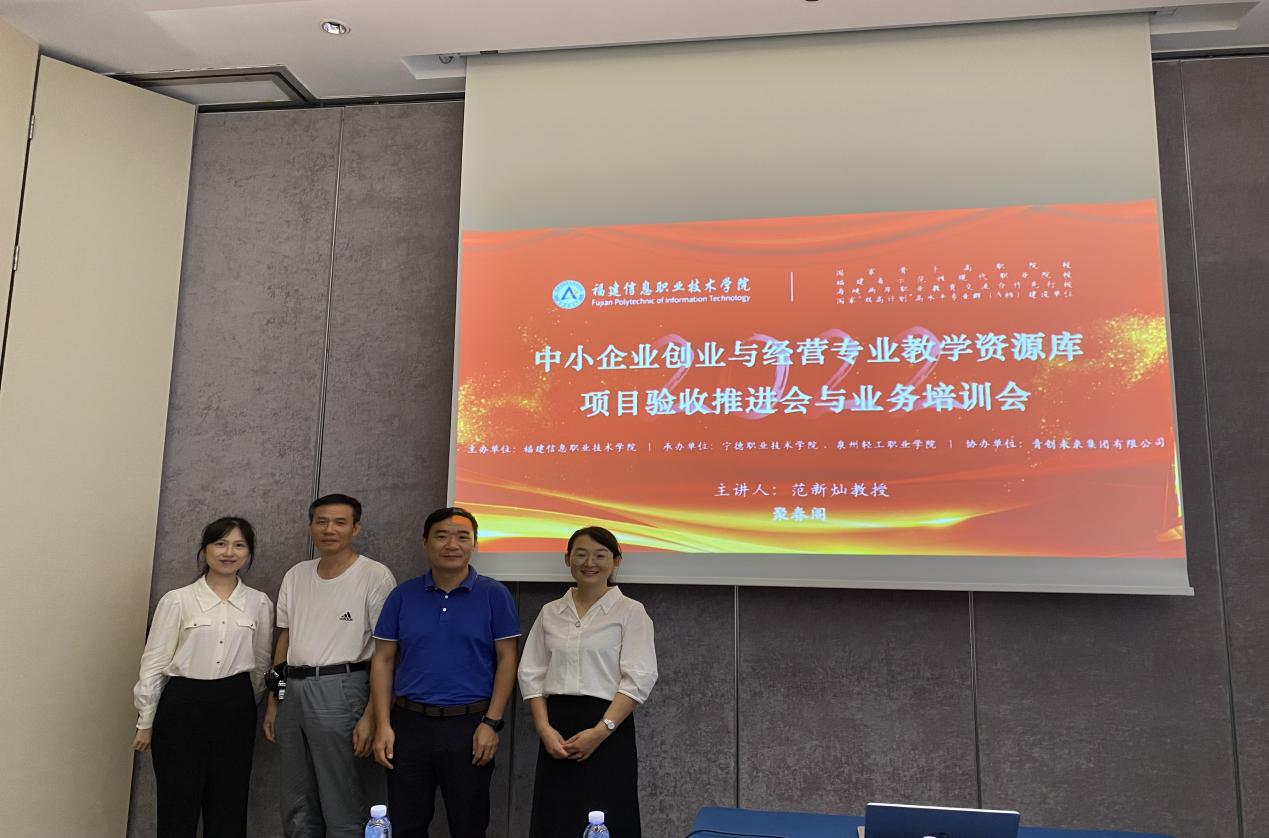 2022年8月9日至11日,国家《中小企业创业与经营》专业教学资源库(以下简称“资源库”)项目验收推进会与业务培训会在福州海峡国际会展中心聚春园酒店召开,会议由第一主持单位福建信息职业技术学院主办,主持单位宁德职业技术学院、泉州轻工职业学院承办,青创未来集团有限公司协办,来自闽江师范高等专科学校、长江职业学院、晋中职业技术学院、湄州湾职业技术学院等全国20个承担课程建设高职院校参加会议,我校公共基础部副主任黄昌兴以及王宏、范瑜楠老师参加了会议。