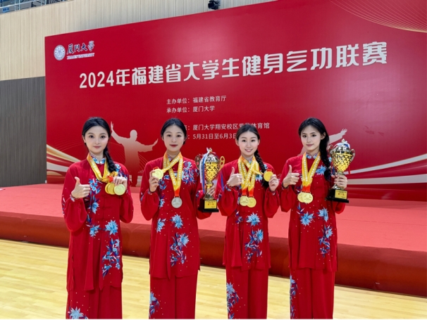 6月3日,由福建省教育厅主办的2024年福建省大学生健身气功联赛在厦门大学落下帷幕。我校公共基础部派出由领队薛庆云、教练谢群喜和余春潮、刘乘宇、苏娜、曹欣怡、范巧云、叶睿霖、林志欣、袁睿8位学生组成的队伍参加此次比赛。本次比赛共吸引来自全省59支代表队的222名运动员参赛,其中包括厦门大学、福州大学、集美大学、泉州师范学院以及福州职业技术学院、厦门海洋职业技术学院等高校。