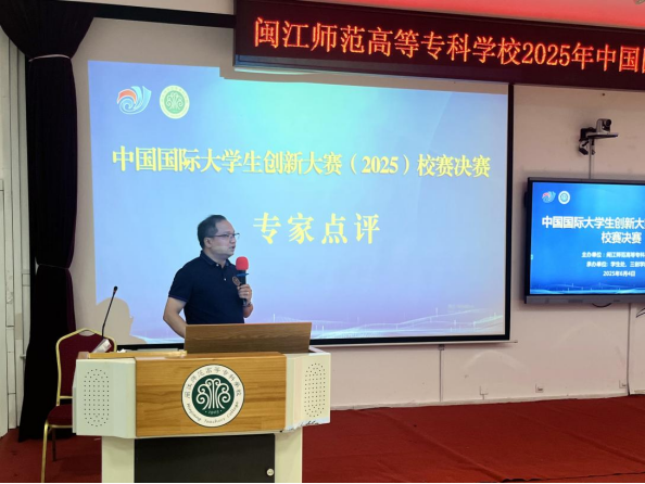 为进一步激发青年创新活力,展现我校学子创新风采,2025年6月4日,我校在旗山校区教学楼2018阶梯教室成功举办中国国际大学生创新大赛校赛决赛。大赛特邀国发创新研究院院长肖平、福建拓天生物科技有限公司董事长肖志勇、福建尚才投资管理有限公司董事总经理杨志磊、福建聚优创服联合创始人林青山、福州大学生至诚学院三创中心主任吴晓敏担任大赛评审。闽江师范高等专科学校党委副书记谢敏峰、学生处相关领导、通识教育学院(三创学院)教师代表、各项目团队参赛学生、指导教师近200多人参加活动。