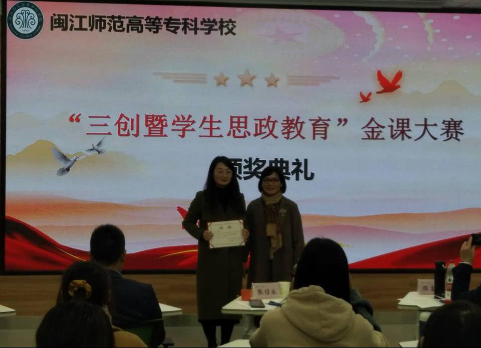 2020年12月16日,我校首届“三创暨学生思政教育”金课大赛在旗山校区3016举行现场决赛,公共基础部王宏老师凭借扎实的教学基本功和富有创意的教学设计,以第一名的佳绩获得一等奖。