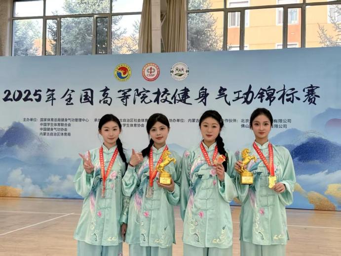 7月31日,由国家体育总局和中国学生体育联合会联合主办的2025年全国高等院校健身气功锦标赛在内蒙古自治区·内蒙古师范大学落下帷幕。由通识教育学院薛庆云、谢群喜2位老师和苏娜、曹欣怡、袁睿、谢佳雯、范巧云、柯毕函、周燕玲、杨名珠8位学生组成的闽江师范高等专科学校代表队伍参加此次比赛。据悉,本次比赛是全国高校健身气功领域规格最高、影响力最大的赛事,吸引了来自全国29个省市的300余支高校代表队、1200余名运动员同台竞技。