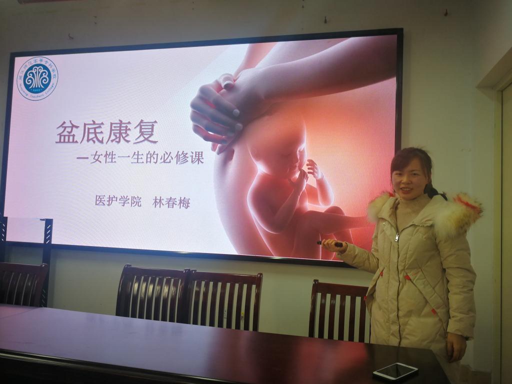 12月24日下午,我校工会女工委在旗山校区八楼党员活动室开展“妈妈小屋”系列活动之二:“盆底康复——女性一生的必修课”知识讲座。我校医护学院林春梅老师为女职工详细讲解女性盆底康复及妇科健康知识。