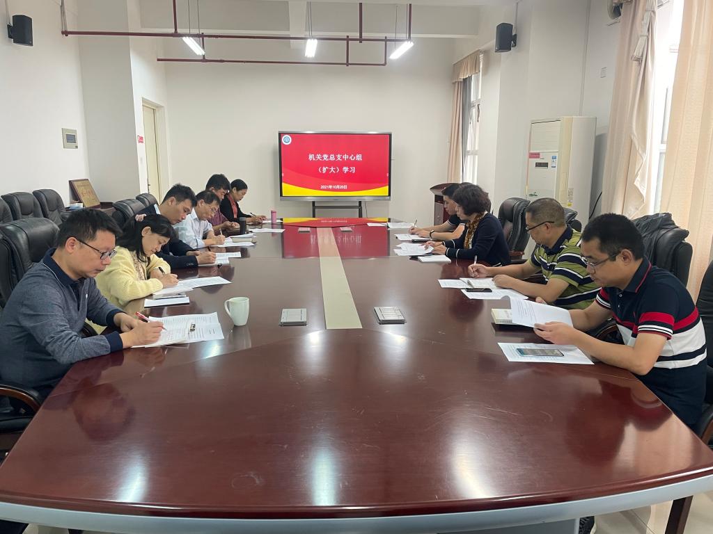 10月20日上午,我校机关党总支在七楼第三会议室召开中心组(扩大)学习会,会议由校机关党总支副书记(主持工作)林锦芯主持。机关党总支委员和机关党总支各支部书记参加会议。