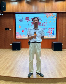 公基部副主任黄昌兴为两位退休教师佩戴大红花,回顾了陈建华、陈华两位老师的工作历程,肯定了二位教师为学校发展做出的贡献,代表学校向两位老师赠送荣休纪念品,感谢他们为学校发展所做出的贡献。随后,两位退休老师也与大家分享自己在教育工作岗位上奋斗几十年的工作体会,陈建华老师的福清缘分故事令人印象深刻,陈华老师也深情回顾了自己工作历程。二位教师兢兢业业、无私奉献的精神令人感动,全体教师以茶代酒,举杯祝福,合影留念,高歌合曲,其乐融融。