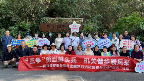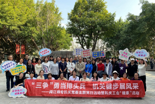 正是一年春好处,绝胜好景望榕城。3月8日下午,为深入贯彻党的二十大精神,践行省委、市委和学校党委“深学争优,敢为争先,实干争效”行动部署,在习近平总书记来闽考察两周年到来之际,机关党委联合机关工会、女工委在福山郊野公园开展“敢打头阵,勇当先锋,争做标杆”主题党日活动暨机关工会“建家”活动,展现机关教职工朝气蓬勃、昂扬向上的精神风貌。
