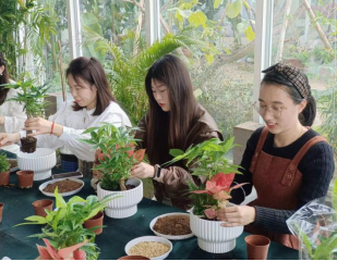 在花艺师的讲解下,结合各自手中材料的特点,从构图、布局开始,不断地进行尝试和实践,打造出了一件件错落有致、赏心悦目的花艺作品。