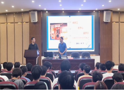 为进一步弘扬劳模精神、劳动精神、工匠精神,推动融入校园思政教育、劳动教育、专业教育,促进汽车类专业人才培养,6月21日下午,智能制造学院“劳模工匠进校园,技能大师面对面”活动在仓山校区学术报告厅开展,国务院特殊津贴专家、全国五一劳动奖章获得者、国家级技能大师、东南(福建)汽车工业有限公司技术长林杰受邀作《精于工·匠于心·品于行》的专题讲座。2021级、2022级汽车制造与试验技术专业、新能源汽车技术专业学生聆听了精彩讲座。讲座由汽车制造教研室副主任杨康主持。