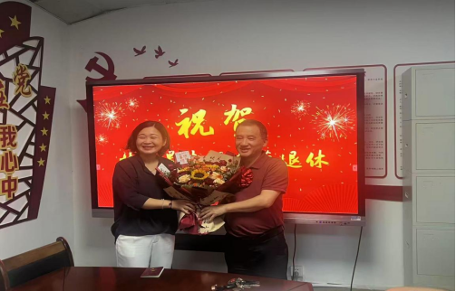 校工会干事杨紫凌代表校工会为林修愚老师颁发了光荣退休证,并送上了工会精心准备的退休纪念品与美好祝福,感谢他将最美好的年华奉献给了教育事业。