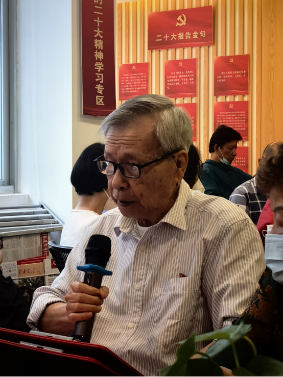 在老党员政治馆学习专区,离退休党员干部分别从“党的二十大精神我来学”和“党的二十大报告金句我来读”两个方面展开集中学习。离退休第一支部书记邹秀玉梳理了党的二十大精神知识要点,为支部党员领学党的二十大要点内容。离退休党支部党员贾承纪为大家铿锵有力地朗读党的报告金句,感受金句蕴含的思想内涵,感悟精神实质,汲取奋进力量。