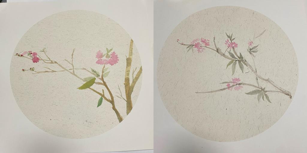 国画班教师李顺平详细讲解了绘画技巧,指导学员在写生的过程中认真观察花朵的形态和色彩,用笔触捕捉花瓣的细腻纹理和叶片的轻盈姿态。