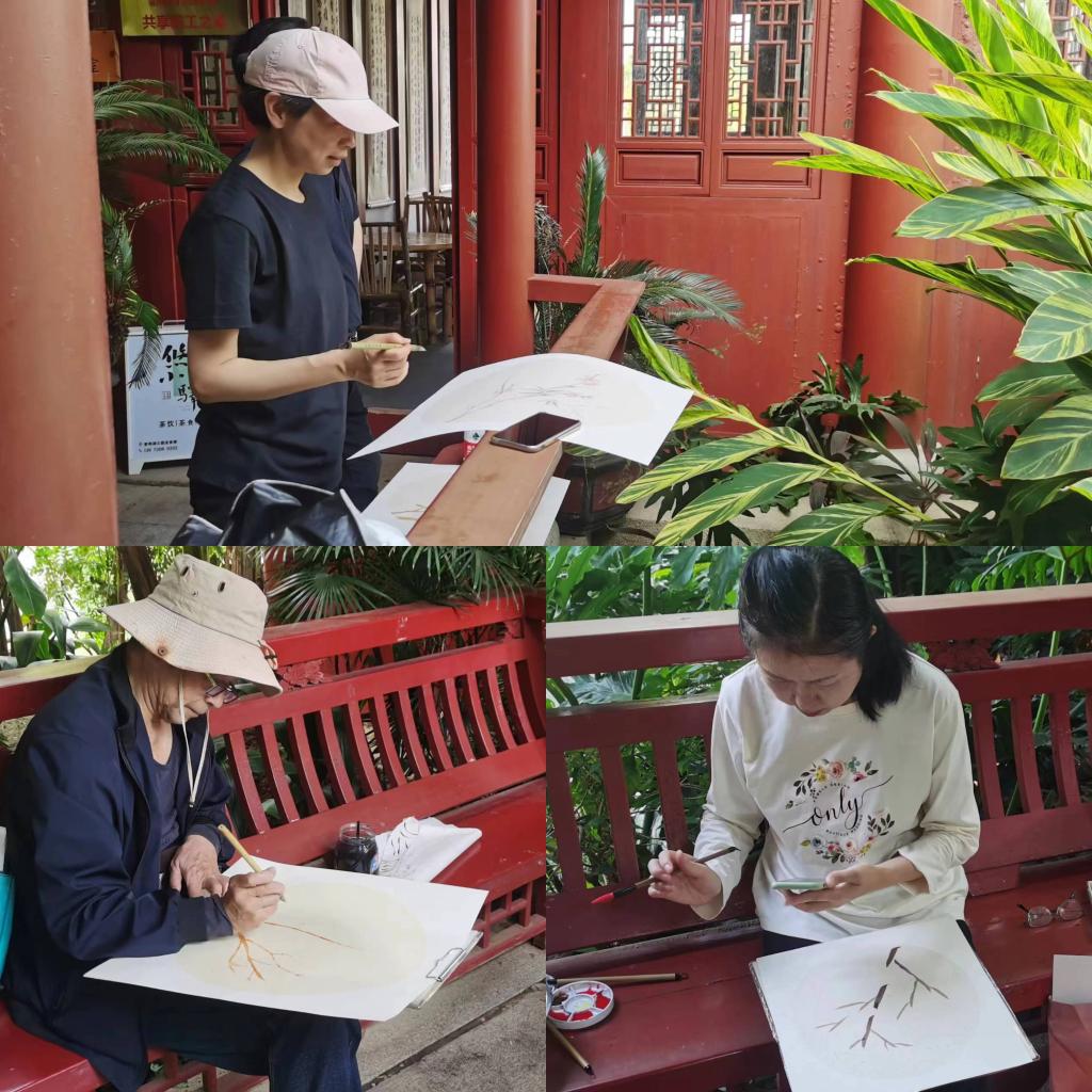 绘画过程中,学员们发挥自己的想象力和创造力,每一笔、每一划都显得那么认真而专注。国画班学员、退休教师曹红说:“我平时喜欢国画,就报了咱们学校自己的国画班,从零基础学起,不仅可以学到课堂知识还能到户外实地写生,非常有成就感!”