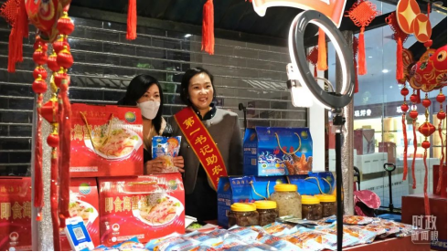 △2023年1月9日,在“2023辽宁网上年货节”上,“第一书记”直播推销当地特产年货。