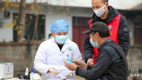 △2022年12月,贵州岑巩成立流动服务队,村医走村串户免费为老人提供巡诊服务。