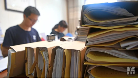 △2022年7月6日,安徽省淮南市的巡察组工作人员正在查阅安丰塘镇村级账目,严防群众身边的“微腐败”。