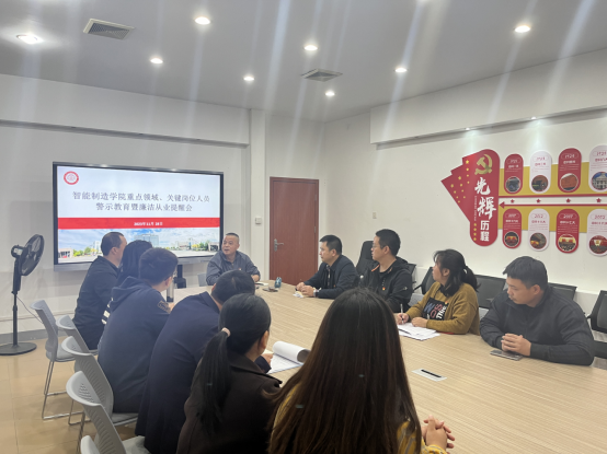 为认真贯彻落实习近平总书记关于党的建设的重要思想,推动学习贯彻习近平新时代中国特色社会主义思想主题教育走深走实,加强学院党风廉政建设,11月28日下午,智能制造学院召开重点领域、关键岗位人员警示教育暨廉洁从业提醒会。