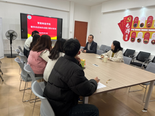 为进一步加强和改进大学生思想政治教育工作,充分发挥辅导员在大学生教育管理工作中的主动性和创造性,3月18日下午,智能制造学院在17号楼党建会议室开展辅导员应知应会能力展示活动。活动由党总支副书记吕志达主持。
