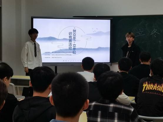 为进一步加强我系学生民族自尊心、自信心,弘扬中华民族优秀传统文化,2021年11月6日晚,我系学生会学习部围绕我国传统节日“立冬”开展“贺立冬”知识竞赛,开展了一场新颖的立冬传统习俗知识竞赛。