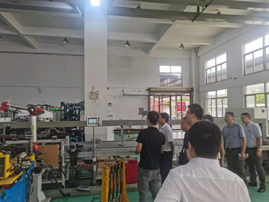 调研期间,调研组一行在研究院领导的陪同下,参观了华中科技大学智能制造研究院产学研基地、高斯康(福建)机电有限公司与华昂体育智能制造制鞋生产线研究基地,进一步了解华数机器人有限公司的技术研发在两家企业生产实际中的应用情况。
