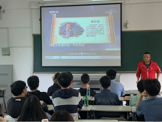 课上,李扬新书记从大学生关注的学习和生活等方面为切入点,结合自身的经历,教育我系学生在大学生涯里要有丰富的内心,培养坚定的目标,并为之不断努力奋斗;通过分享《经典咏流传》中的片段“青玉案•元夕”和“我爱这土地”,引导我系学生要坚持弘扬中华民族传统文化,做爱国主义的践行者。