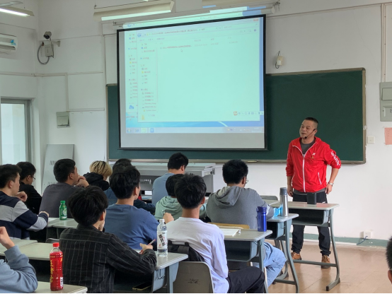 11月11日,机电工程系党总支书记李扬新在仓山校区5号楼502,以“坚定理想信念,弘扬爱国主义精神”为主题,为我系2020级工业机器人1班的同学上形势与政策课。