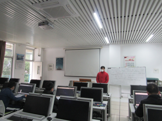 考核中,陈强副校长带队巡视考核现场,了解考核组织、考核纪律、考核设备、考核环境等情况,仔细查看教师考核情况。