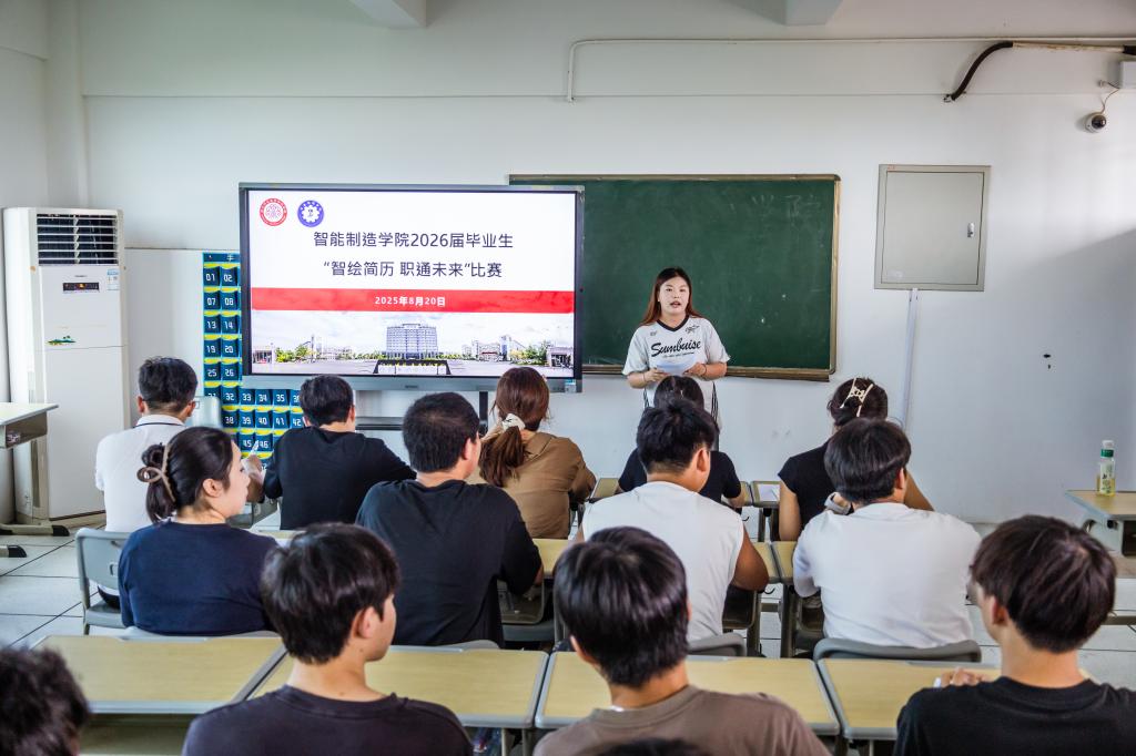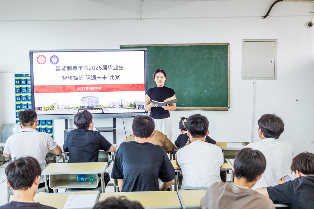 为助力2026届毕业生提升求职竞争力,帮助他们提前做好求职准备,8月20日,智能制造学院在17号楼301教室举办“智绘简历职通未来”简历设计与展示比赛。