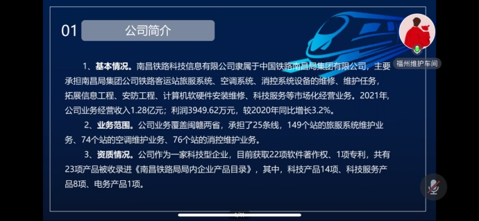 为进一步促进毕业生充分就业,1月24日晚,智能制造学院通过腾讯会议开展南昌铁路科技信息有限公司招聘宣讲会。毕业班辅导员王淑霞、2024届毕业生参加宣讲会。