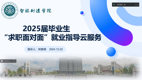 为增强学生职业规划意识,提升就业能力,有效解决毕业生就业问题,切实推进毕业生更加充分、更高质量的就业创业目标,12月22日晚,智能制造学院组织开展2025届毕业生“求职面对面”就业指导云服务活动(第三期)。此次活动由毕业班辅导员主讲,通过线上平台为2025届毕业生们提供直接、实用且富有针对性的就业指导。