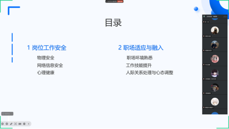 为持续助力2025届毕业生提升职场适应能力与就业竞争力,智能制造学院于5月25日举办第十三期“求职面对面”就业指导云服务活动。本次活动以线上形式开展,聚焦岗位工作安全、职场适应与融入等主题,为毕业生提供了全面、实用的就业指导服务。