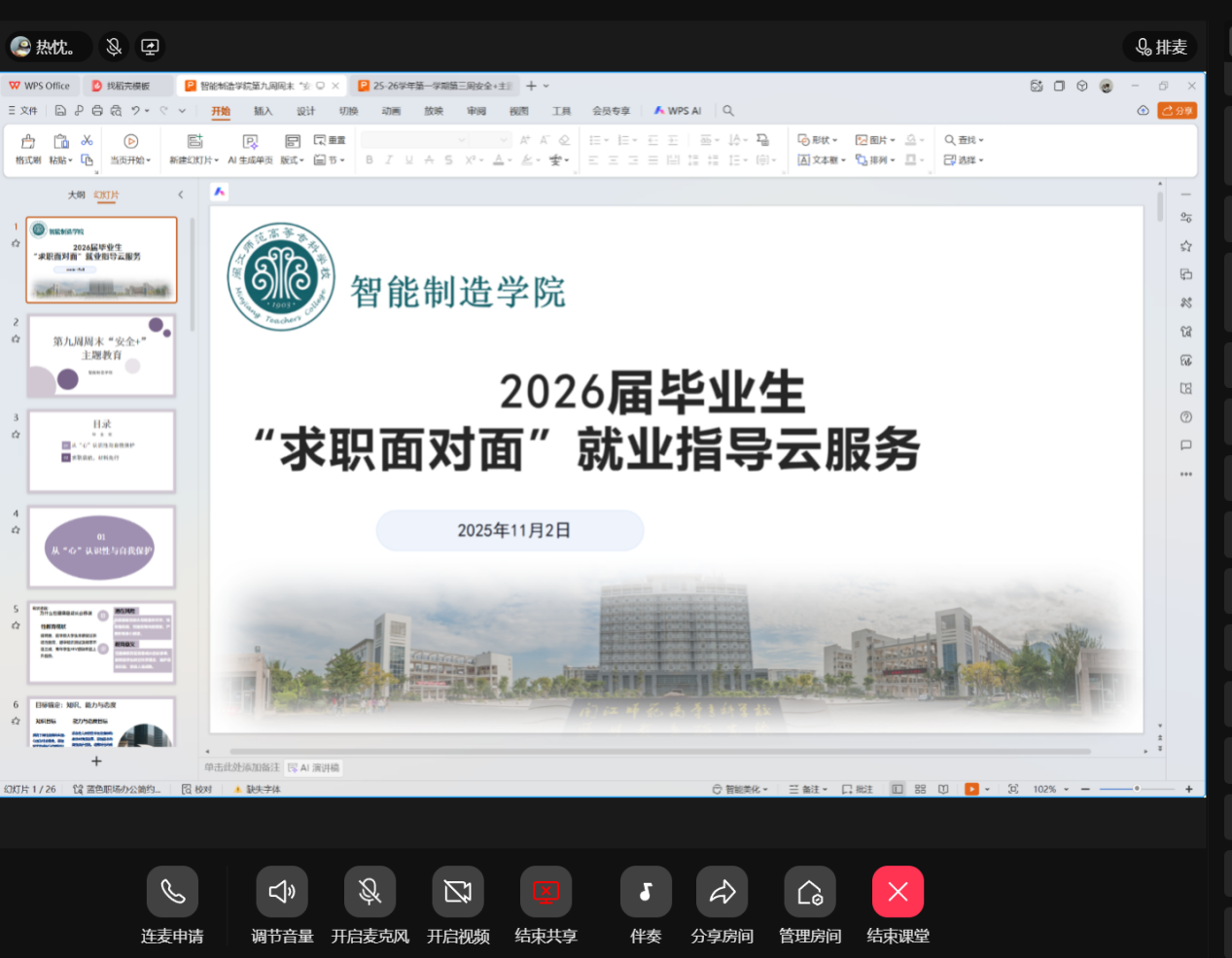 智能制造学院于11月2日通过线上平台开展2026届毕业生“求职面对面”就业指导云服务活动(第二期)。本期活动以“求职启航征程,材料铸就基石”为主题,围绕简历撰写、求职信撰写、沟通技巧等核心能力展开培训。