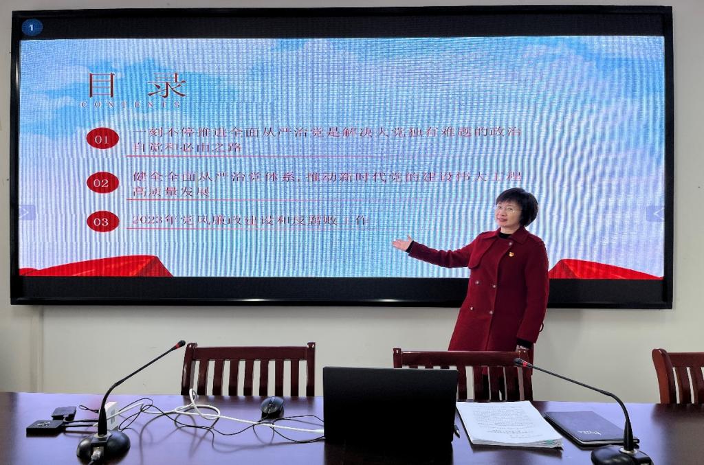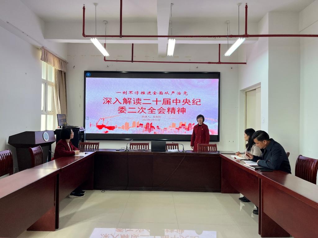 为认真学习贯彻二十届中央纪委二次全会精神,更好地用全会精神指导新一年纪检监察工作,2月23日,监审室党支部书记吴春艳同志为支部党员讲授专题党课。