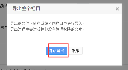 2.2、单击“开始导出”(导出的时间受文章数量大小限制,建议一次不要选择过多新闻,否则容易出现假死现象。)