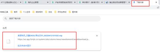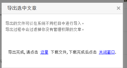 2.3、导出完成后,单击“这里”下载导出的文章,打开网页“下载内容”页面,可定位到导出的文章(此过程会因导出文件过大发生白屏卡顿等现象,建议文章分批次导出)。